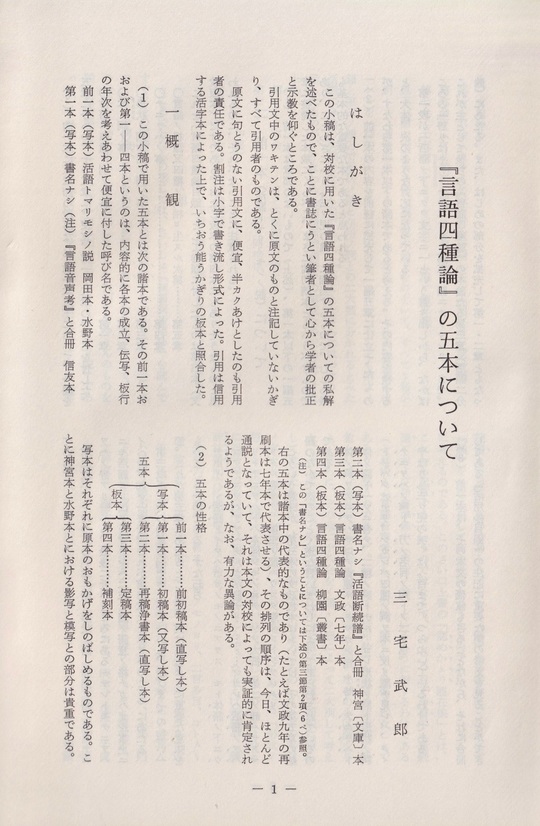 一、『言語四種論』の五本について・・・・・三宅 武郎