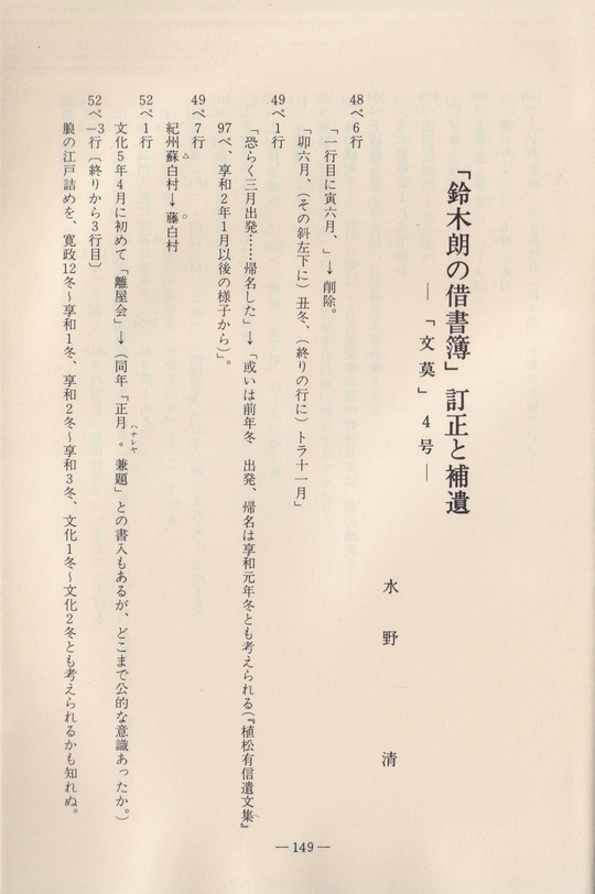 五、「鈴木朗の借書簿」訂正と補遺・・・・・・・・・・・・・・・・・水野 清