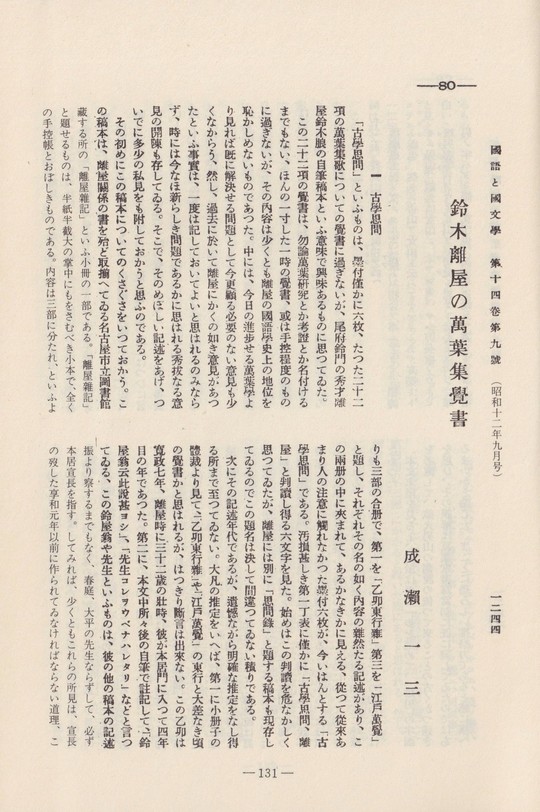 一、鈴木離屋の萬葉集覺書(国語と国文学)・・・・・・・・・・・成瀬 一三