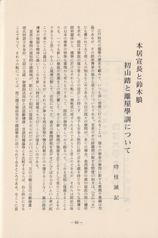 三、時枝誠記「本居宣長と鈴木朖─初山踏と離屋学訓について─」