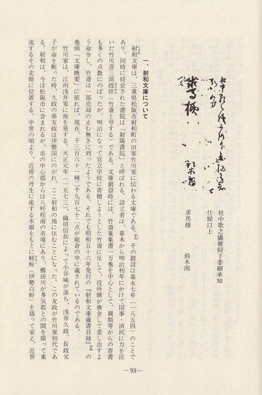射和文庫は、三重県松阪市射和町の旧家竹川家に伝わる文庫である。