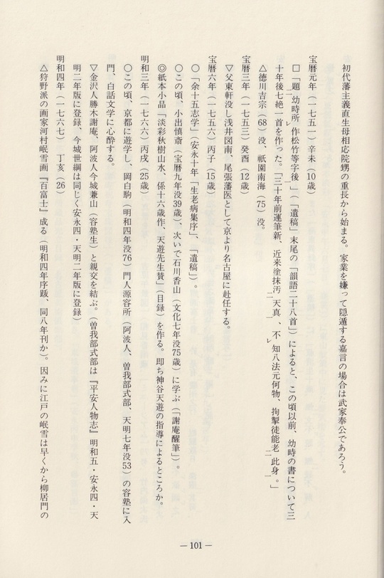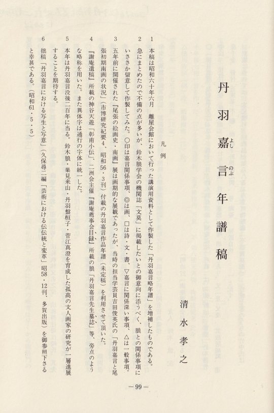 5 本年は丹羽嘉言没後二百年に当る。鈴木朖・巣見来山・丹羽盤桓子・菅江真澄を育成した孤高の文人画家の研究が一層進展することを期待する。