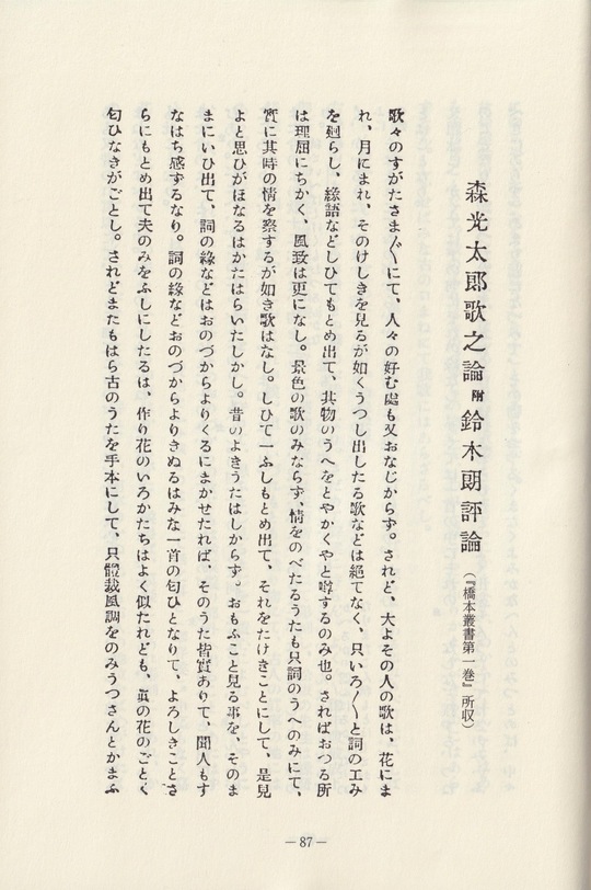森光太郎歌之論附鈴木朗評論(『橋本叢書第一巻』所収)
