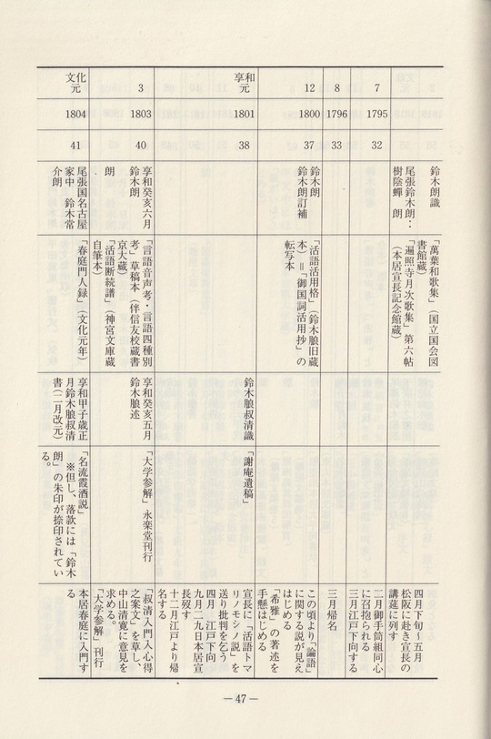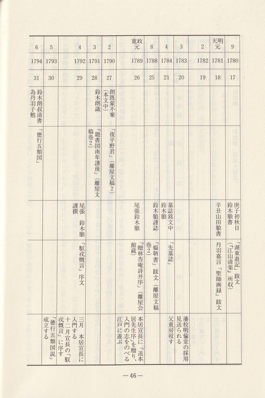 直接鈴木朖と関係するものを選び、年代順に一覧表とした