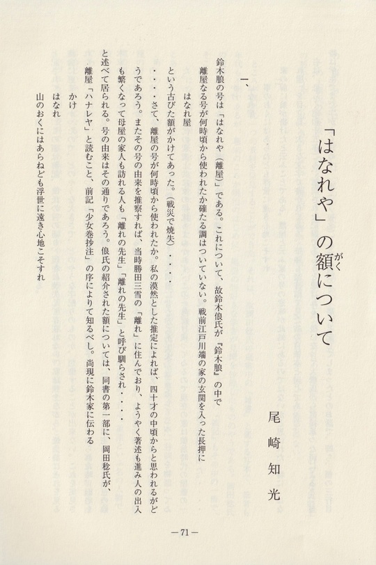 五、「はなれや」の額について・・・・・・・・・・・・・・・・・・・尾崎 知光