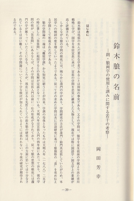 本稿では、鈴木朖の学問を思想史の立場より考えるための基礎作業として朖の名前について若干の考察を試みることとしたい。