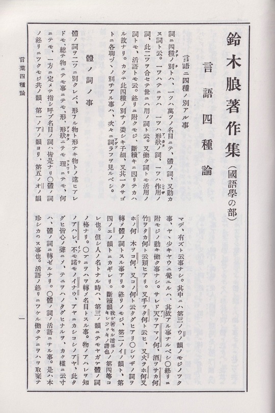 鈴木朖死して百年、久しく埋沒してあらはれなかつたその業蹟は、近時斯道碩學の研究によって漸く顯彰せられ、國語學史上重要なる分野を占めるやうになった。これ實に學界の慶事であると共に、叉彼をして地下に瞑せしめるに足る事と信ずる。
