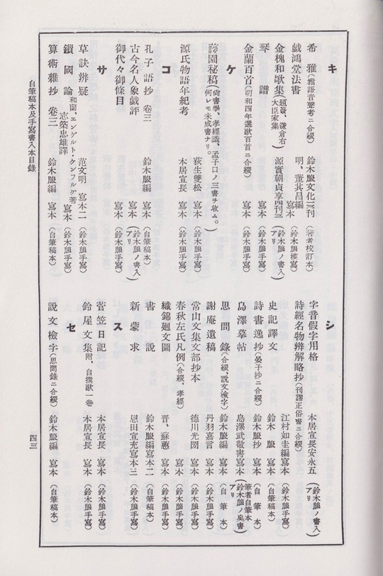 五、鈴木朖自筆稿本自著刊本及手寫・書入本目録