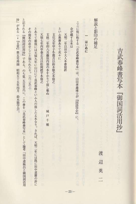 三、吉武春峰書写本『御国詞活用抄』・・・・・・・・・・・・・・・・渡辺 英二