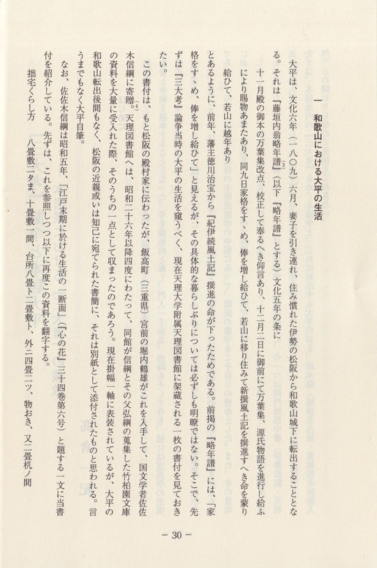 本稿では、こうした問題を論ずる前提として、先ずは、本居派内の『三大考』をめぐる論争と、これに対応する大平の姿を、鈴木朖(尾張名古屋・寛政四年鈴屋入門)との関わりも含めて見据えておきたい。