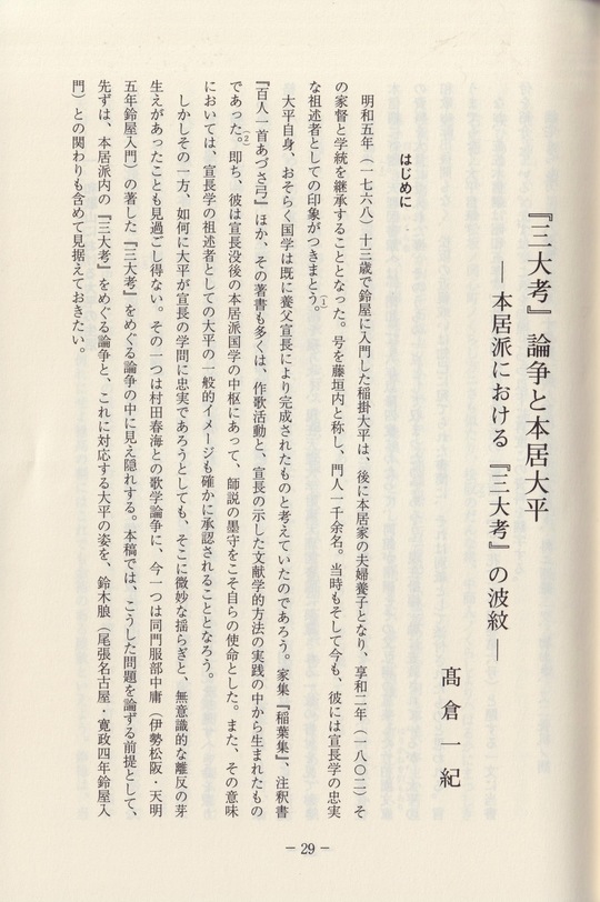 三、『三大考』論争と本居大平・・・・・・・・・・・・・・・・・・・髙倉 一紀