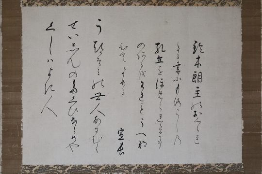 これからお話しいたしますのは、ここに展示してありますところの、本居宣長が鈴木朖に与えた一幅の書跡についてであります。
