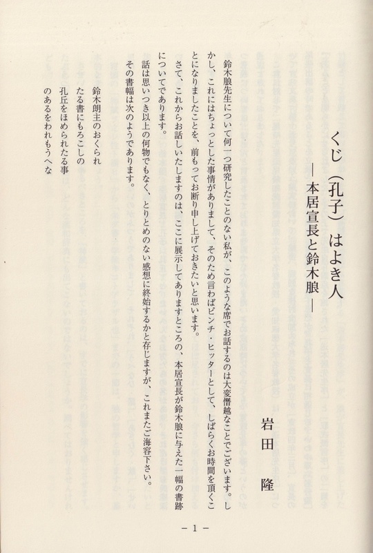 一、くじ(孔子)はよき人─本居宣長と鈴木朖─