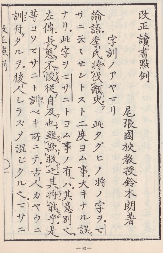 国語の関心が深ければ破格の訓点が排斥されることは、鈴木朗の論語參解などによつて判明する。彼が国語学上の種々の業績をあげたあとの刊行になるものだけに、江戸末期の極端な訓点が盛行する中にあつて、よく純正さを守り得てゐるものである。