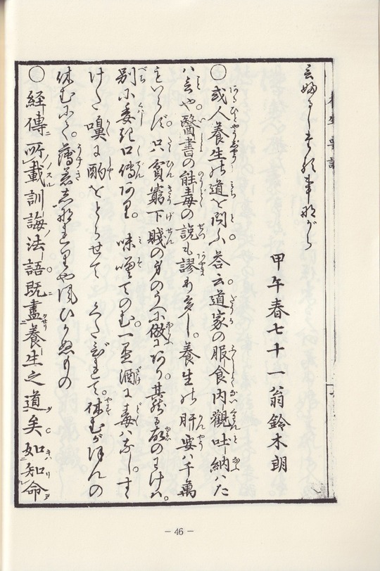『養生要論』 鈴木朗 自序、本文