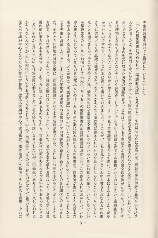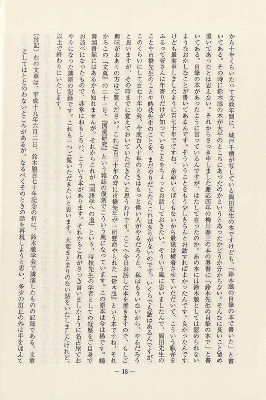 本年はご存じのように鈴木朖没後百七十年の記念の年でございます。そこで今回は学問的な話はちょっとよけておいて昔の思い出話を中心にして、いろいろとりまぜてごく雑駁な話をとりとめもなく申し上げたいと方針を変えて参りました次第です。