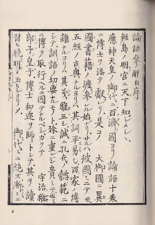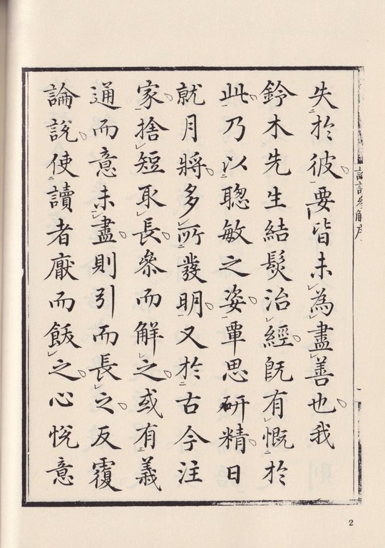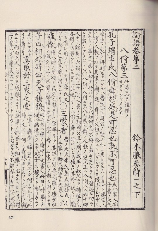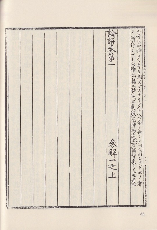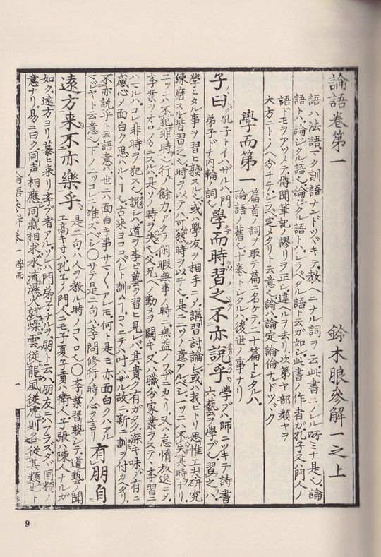 本書は鈴木朖が大学と論語の注釈書として書かれた版本をそのまま影印している。大学、論語の本文に朖が返り点等を付け、一語一語に註釈を施している。当然江戸時代の日本語ではあり、多少なりとも現代人には読みづらいかもしれないが、朖の息遣いを感じることができる。論語参解は版本では五冊に分かれているが、本書にはすべてが入っている。